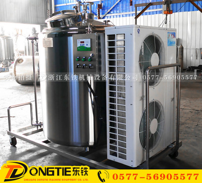 不锈钢立式制冷罐选用高性能、节电型的全封闭式压缩机装有可靠保护器,不会因过载或系统故障而烧坏电机。保温层采用聚氨酯发泡新工艺,绝热性能好。罐体选用优良不锈钢材料制作,带有自动清洗装置及搅拌装置。