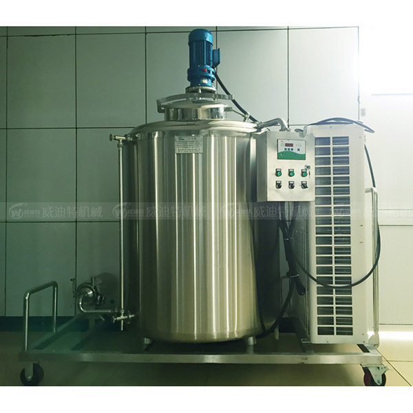 立式制冷罐设备结构:主要由罐体、搅拌器、制冷机组、电气控制等几部分组成。立式制冷罐罐体采用双层不锈钢制成,经精密抛光处理,污垢不易积存,易清洗耐腐蚀。在内外罐体之间采用了聚胺酯硬质泡沫板,该材料具有导热系数低、比重轻、强度高、吸水率低的保温层,保温性能好。立式制冷罐设计、制造技术先进、性能可靠,冷却、保温性能和卫生标准均符合国际先进水平。