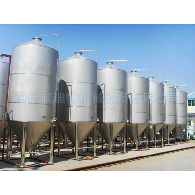 主要材料为SUS304卫生级不锈钢;上部为不锈钢蝶形,下部为60度圆锥形,排出酵母菌100%TIG焊接,清洁和抛光;设计压力0.2MPa,测试压力0.4MPa;3-4个坚固的不锈钢脚,高度可调水平支架,内壁厚度3毫米,聚氨酯泡沫绝缘,绝缘厚度60-100毫米,外皮厚度2毫米。