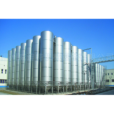 大型啤酒发酵罐--啤酒发酵系统有发酵罐、清酒罐、暂存罐组成;发酵是啤酒生产中极其重要的工艺过程。是一个有酵母参与的复杂的生化反应过程,发酵罐为锥底圆柱形,罐体具备自身冷却装置,可很容易地控制发酵温度;罐底为锥形,回收酵母及清洗都很方便;罐体具有CIP清洗系统,保证了生产中的卫生安全。具备了先进的国际发酵工程技术,可采用PLC自动控温技术。