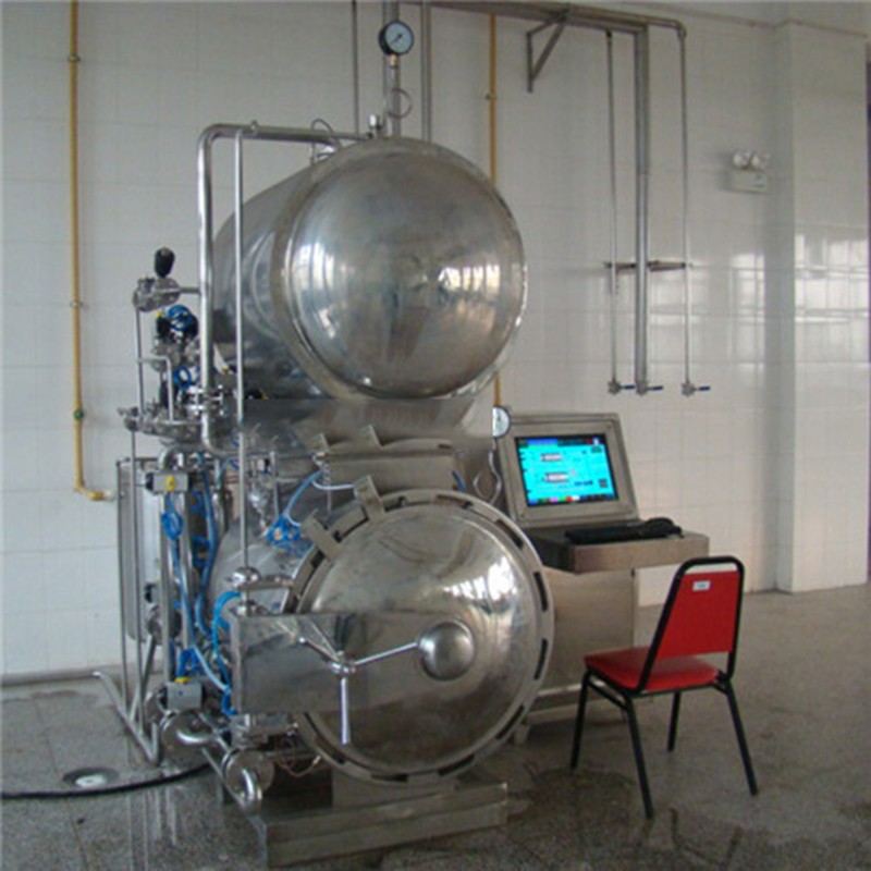 该设备由锅体、锅盖、开启装置、锁紧模块、安全联锁装置、轨道、灭菌框、蒸汽喷管及若干管口等组成、锅盖密封采用充气式硅胶耐温密封圈,密封可靠,使用寿命长。具有受热面积大,热效率高、加热均匀、液料沸腾时间短、加热温度容易控制等特点、杀菌锅主要用于食品行业、医药等各领域。