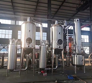 双效浓缩器采用外加热自然循环与真空负压方式,蒸发速度快,浓缩比重大。液料在全密封中无泡沫浓缩,用本设备浓缩出来的药液,具有无污染,药味浓。清洗方便。